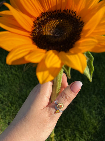 Energia Áramlás és Öntudat**: A gyűrű napraforgó szirmai összekapcsolódnak a viselője energiájával, növelve az öntudatot.